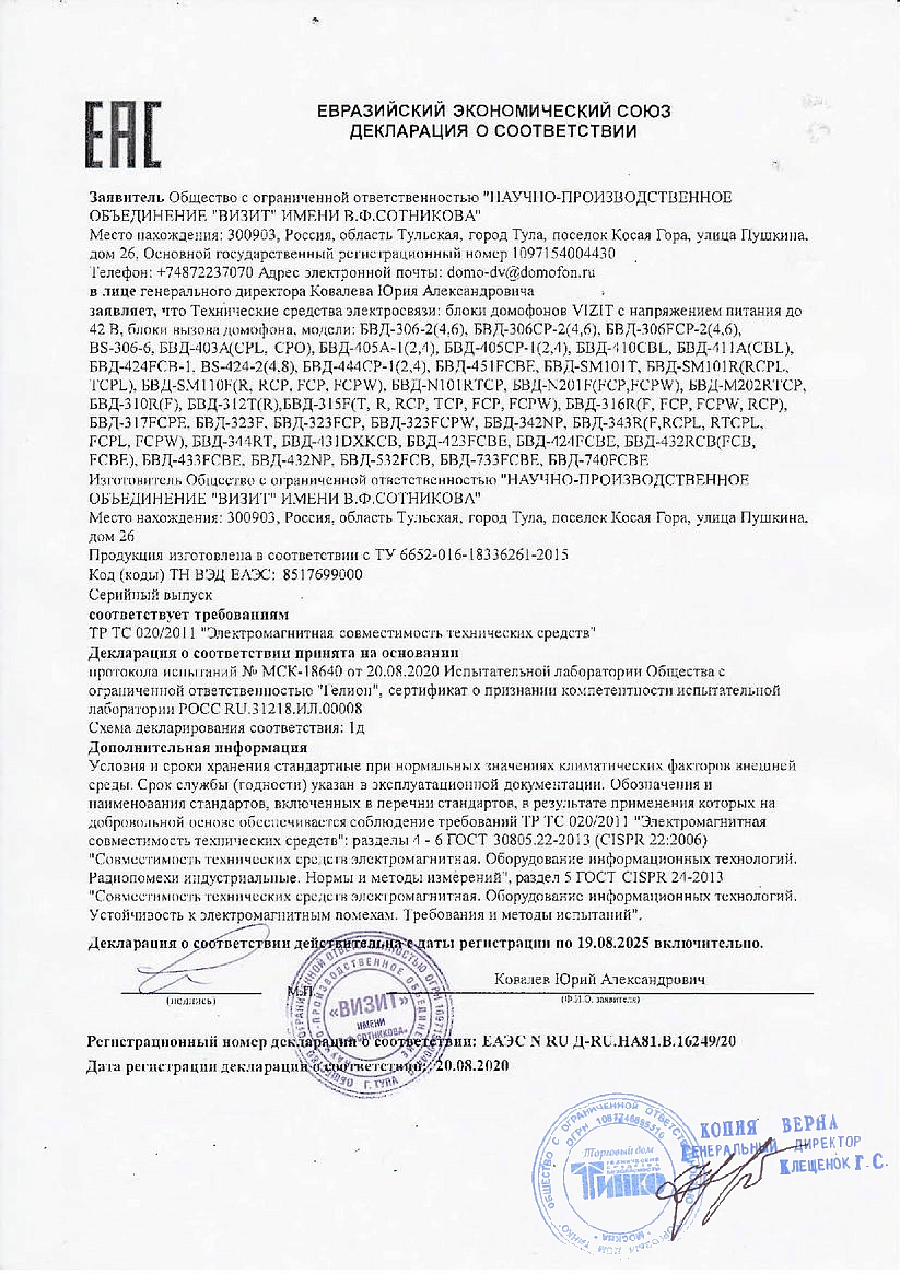 Блок вызова БВД-403CPO Vizit купить в Ижевске в компании ВИПАКС.