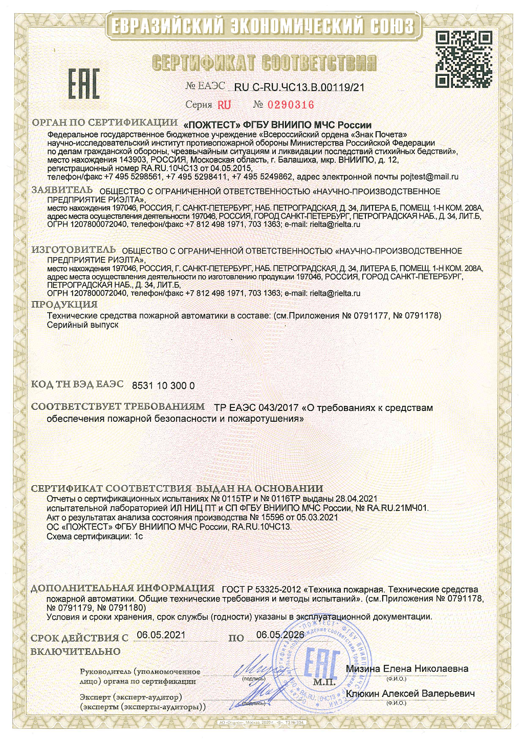 Извещатель пожарный ручной радиоканальный, рабочая частота 433,05...434,79 МГц, индикация режимов работы, элемент питания CR123A(основной) CR2032 (резервный), степень защиты оболочкой IP54, диапазон рабочих температур -20…+55°С, габаритные размеры 106×98×70 мм