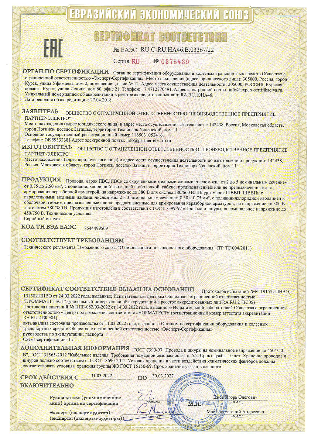 Гибкий провод ПВС (ГОСТ 7399-97) имеет поливинилхлоридную изоляцию и состоит из медных жил. Предназначен для присоединения к электрической сети с напряжением до 380/660 В. различных видов бытовых