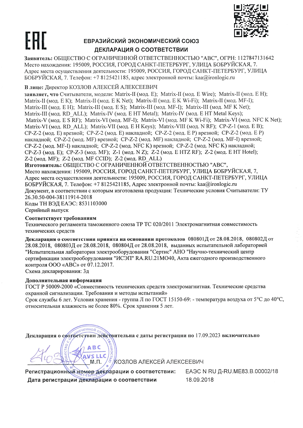Считыватель Matrix-III RD-All (тёмный) IronLogic купить в Ижевске в компании ВИПАКС.