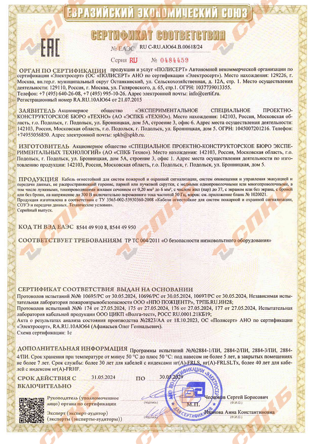 • Для одиночной и групповой прокладки в системах ОПС, СОУЭ, системах безопасности и телекоммуникаций, которые должны сохранять работоспособность в условиях пожара.