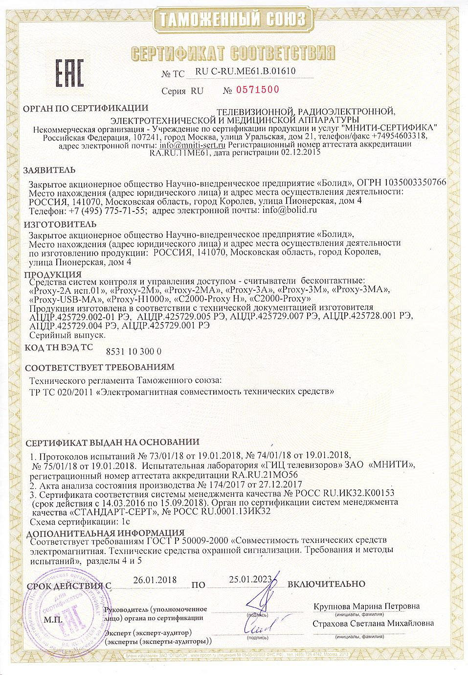 "С2000-Proxy Н" предназначен для считывания кода с идентификационных карточек и передачи его на приборы приемно-контрольные или контроллеры СКУД. В ИСО "Орион" используется для обеспечения процедур управления шлейфами и разделами охранно-пожарной сигнализации и идентификации пользователей в точках доступа СКУД.