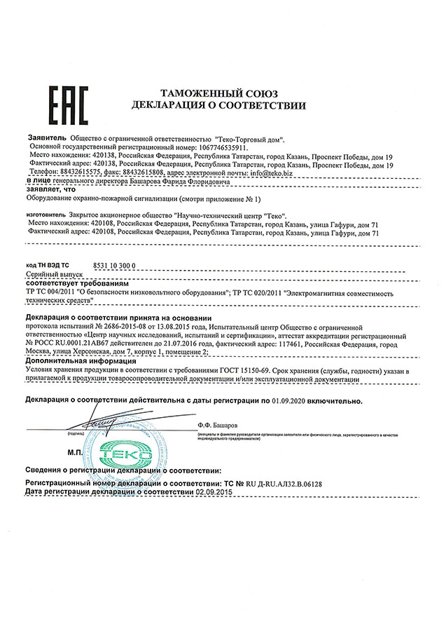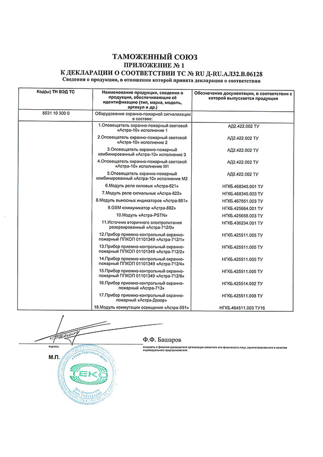 Сертификат соответствия Блок индикации Астра-863 исп.А Теко (лист 6)