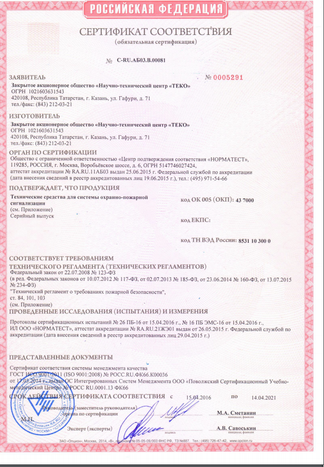 Сертификат соответствия Блок индикации Астра-863 исп.А Теко (лист 8)