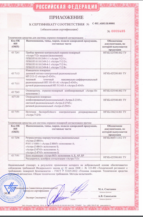 Сертификат соответствия Блок индикации Астра-863 исп.А Теко (лист 5)