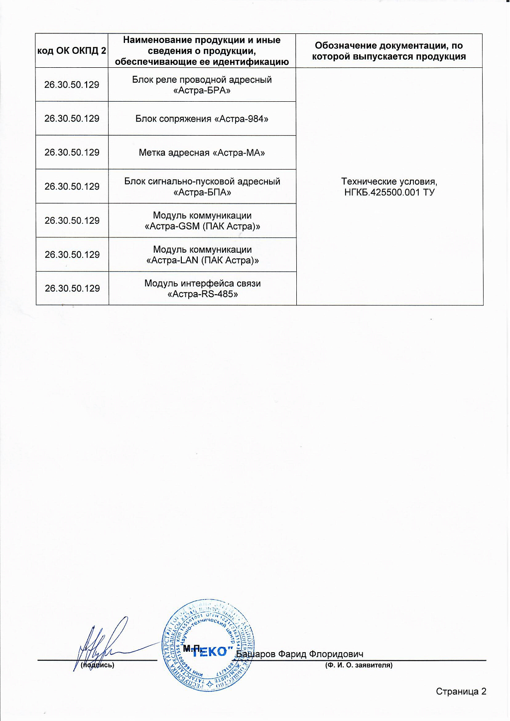 Сертификат соответствия Блок индикации Астра-863 исп.А Теко (лист 2)