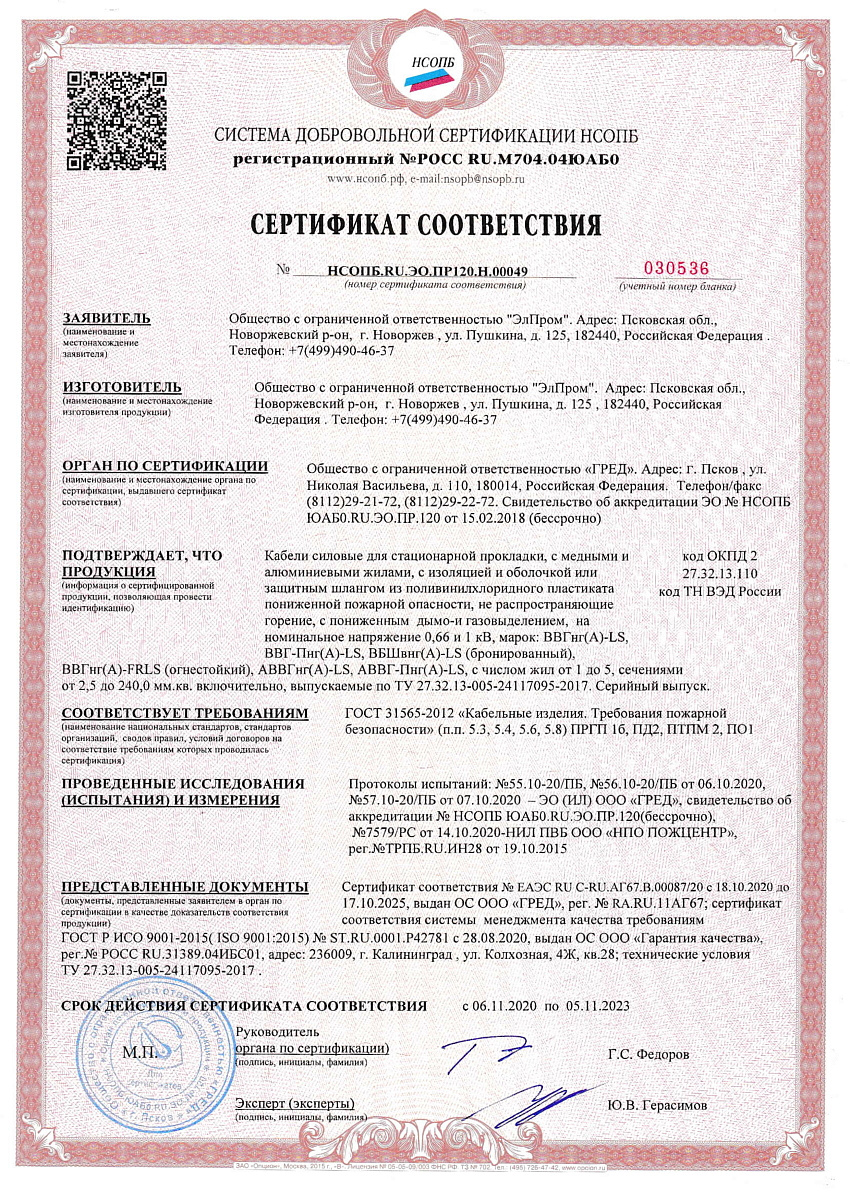 Материал оболочки ПВХ пониженной горючести с низким дымо-газовыделением огнестойкий Материал изоляции ПВХ пониженной пожароопасности с